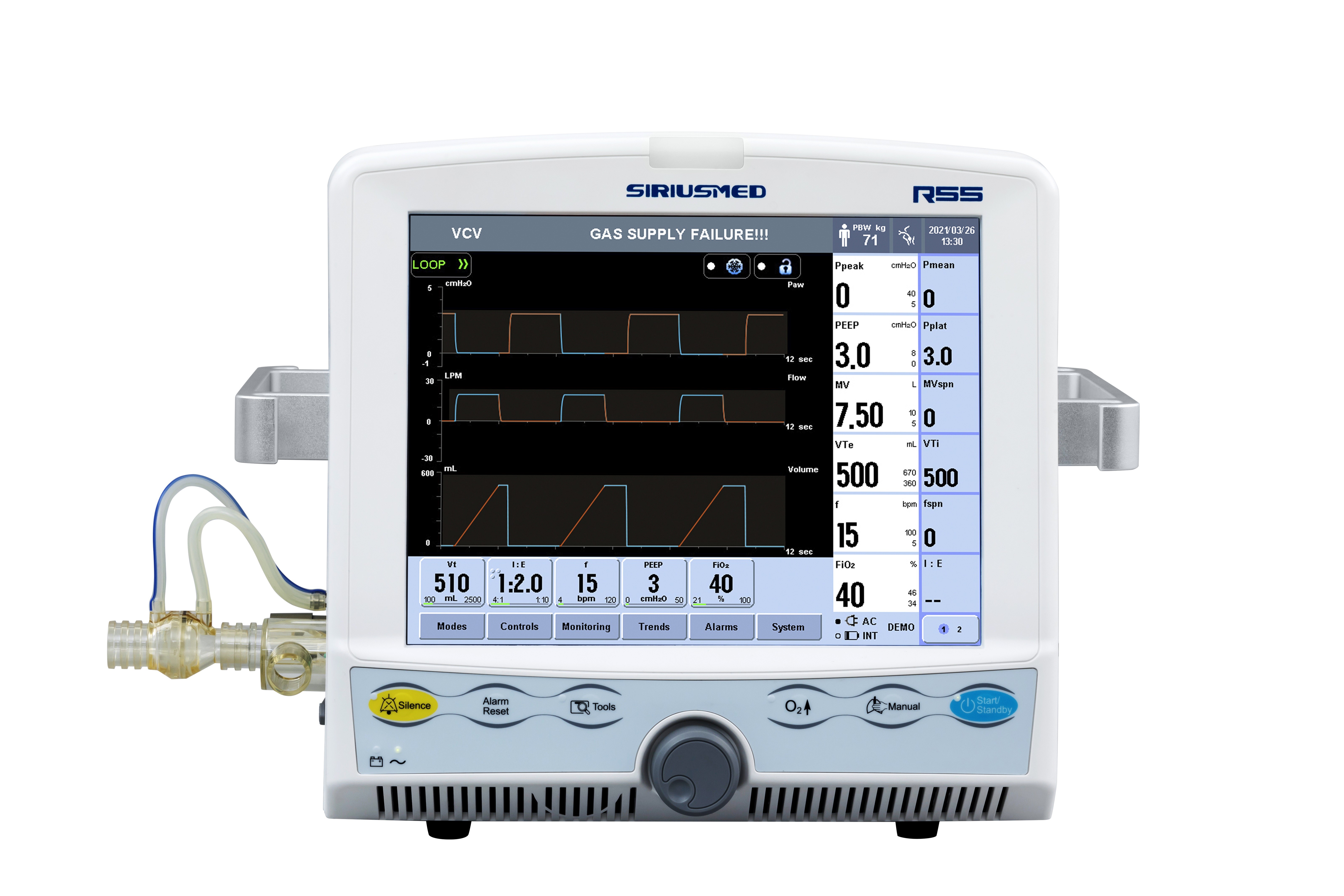 বায়ুচলাচলের পর্যাপ্ত মোড:: VCV, PCV, SIMV-VC, SIMV-PC, SPONT/CPAP+PSV, DuoPhasic